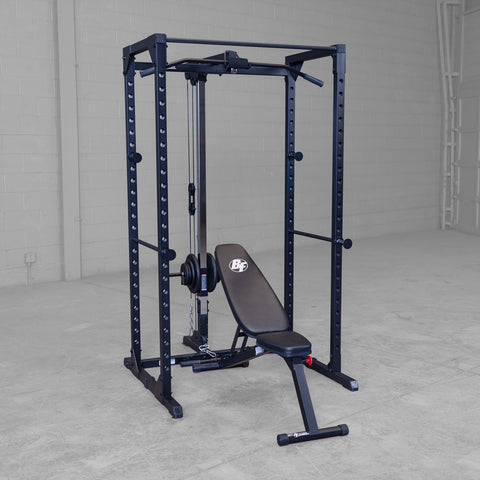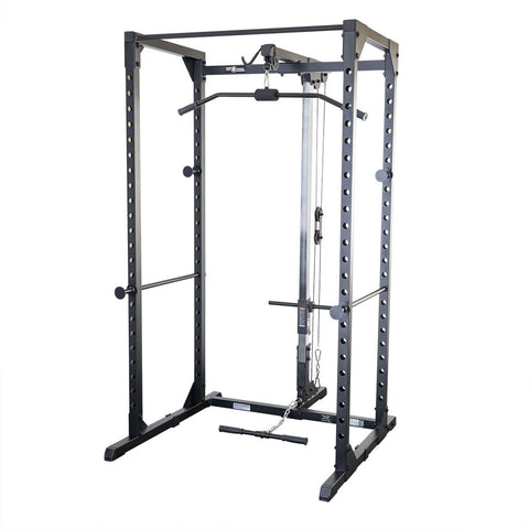 The BFLA100 Lat Attachment transforms your BFPR100r Power Rack into a complete home gym. Perform lat pulldowns, rows, biceps curls, shrugs and more in the comfort and stability of your existing power rack. The BFLA100 Lat Attachment has a high and low pulley with a no cable change design. The BFLA100 features 1” diameter weight posts to accommodate standard weights plates. (Olympic adapter sleeves are available for Olympic plates). Nylon-coated, aircraft quality cables ensure durability and safety even during heavy use. Includes a lat bar and low row bar and is ready for a multitude of other attachments.